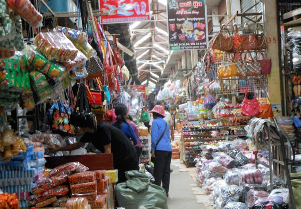 | シェムリアップで市場を見に行くとすると、観光客ならオールドマーケットに行くと思います。オールドマーケットはもともとは地元の人向けのマーケットですからカンボジアのマーケットらしい雰囲気も味わえる一方で、観光客向けの土産物屋やレストラン、カフェも集まっていますから、観光客にとっても魅力的な市場なのです。 でも、地元の人に一番人気があるマーケットと言うと、それはプサールー・マーケットです。「プサールー」というのはクメール語で市場を意味していますから、地元の人はその市場を「プサールー・マーケット」などと呼んでいませんので、誤解のないように。 |