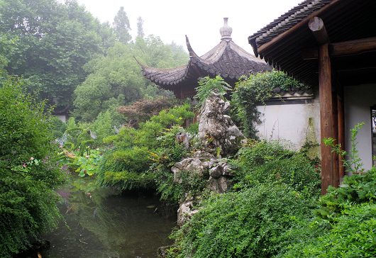 庭園の小路は、一周してもわずか3分程度しかかからない小規模なものです。しかしながら、その周囲には竹林や太湖石といった脇役たちが上手に配置されていて、郭庄の品の良さを感じさせてくれます。 |