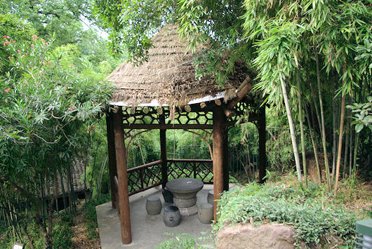 階段を上り、しばらくすると、山麓にある石交亭という亭があります。1912年に建てられた頃は、西湖方面の展望があったのかもしれませんが、今は林に覆われ全く展望はありません。 因みに、「石交」とは「結交金石」(金石の交わり=金や石のように変わることのない付き合いのこと)から取られた名前です。西冷印社は篆刻で有名ですが、もともとは金石学といって金属や石に刻まれた文や画像を研究する機関です。その「金石」から「結交金石」という4文字熟語が想起されているわけです。 |