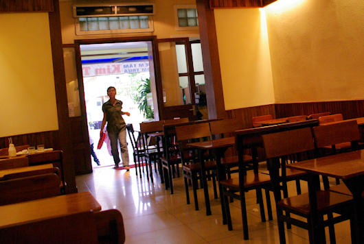 キムタインは小さな店だとは聞いていましたが、本当に間口の小さい地味な店です。ただ、キムタインのあるインターコンチネンタル・アシアナ・サイゴンの裏手の通りは閑静な住宅街で、他に店の看板がありませんのですぐに見つけられます。 |