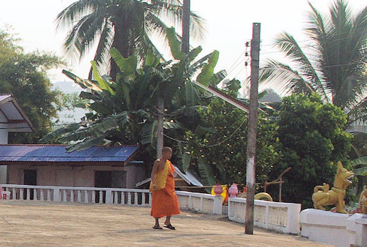 眺めということであれば、結局、この 階段から見る風景が一番良いのかもしれません。 フエサイ、丘の上の寺院は、特に観光地でも何でもありませんが、それだけにラオスの人々と仏教とのふれあいというものが感じられるスポットです。観光客としてのマナーを守りながら、静かに参観したい場所です。 |