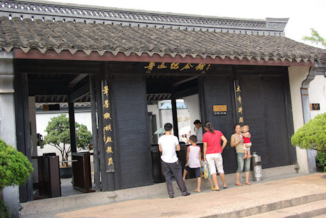 「魯迅故居」エリアにある咸亨酒店です。 ここは、魯迅の小説「孔乙己(こんいーちー)」の舞台となった居酒屋で、科挙(中国で官僚になるためには、このテストに合格する必要がある。)になかなか合格できない知識人、孔乙己が毎日酒を飲みに来たという設定になった場所です。 中国語で「酒店」というと、一般的にホテルや食堂を意味しますが、小説「孔乙己(こんいーちー)」の時代設定では、咸亨酒店は酒を売る「酒屋」であり、酒屋の片隅に立ち飲み式のコーナーがあって、そこに人々が酒飲みに来ているわけです。 今は、ご覧の通り、酒も売っていますが、ちょっとした料理も出しますので、居酒屋みたいなものになっています。まあ、観光客向けに、風情がなくなっているのが残念ですが、……。 |