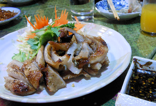 コームーヤーン、豚の喉肉のバーベキューです。これ、私の大好物なのですが、ここいなかむらの味も大好きです。 |