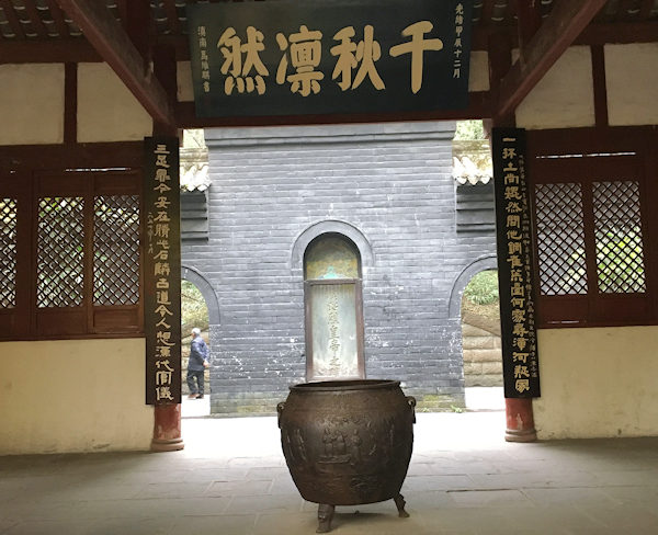武候祠博物館の中で劉備を偲ぶ場所は漢昭烈廟と恵陵です。上の写真は恵陵の周りを巡る道です。紅の壁に挟まれ両側に竹林という何とも気持ちの良い道です。上の写真で道の右側が恵陵でこの道が恵陵に沿って作られています。それだけ恵陵が大きいということです。恵陵については、後程また紹介します。 |
