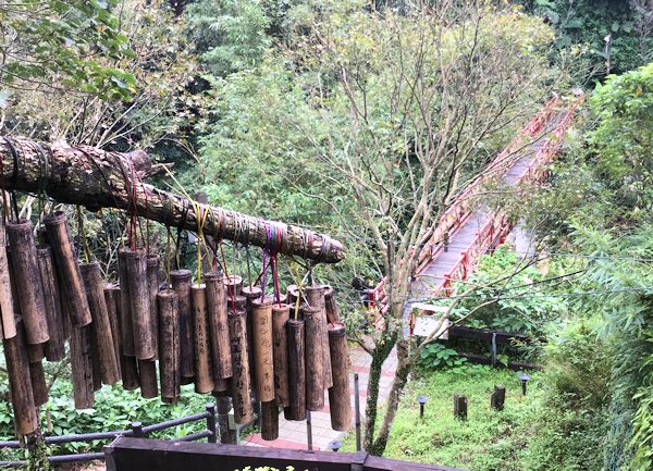 | この辺りの竹筒は随分と以前にかけられたものなのか、字の色があせていて、全く見えないものもあります。この許願筒のための竹筒は菁桐老街で売っていますから、それを買って願い事を書いたら、この情人橋まで持ってきて吊るすと良いのではないでしょうか。 自分の「思い」を許願筒に記して、自分の決意を示してみましょう。 |