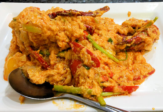 クアン・シーフードバンコクで海鮮料理が安くておいしい店と言うと、スリウォン通りのソンブーンが有名ですが、私がおすすめしたいのはクアンシーフードというレストランです。本店はランナム通り(BTSビクトリーモニュメント駅付近)にありますが、駅から少し離れていますので、私がおすすめしたいのはラチャダー店です。地下鉄ホイクアン駅の2番出口を出てラチャダー通りをひたすら直進するだけですから、分かりやすい場所に位置しています。ここに来たら当然シーフードですが、おすすめは写真のプー・パッ・ポンカレーと牡蠣料理のオースワン、そしてトムヤムクン。地元のタイ人で賑わう美味しいタイ料理を味わえます。 |